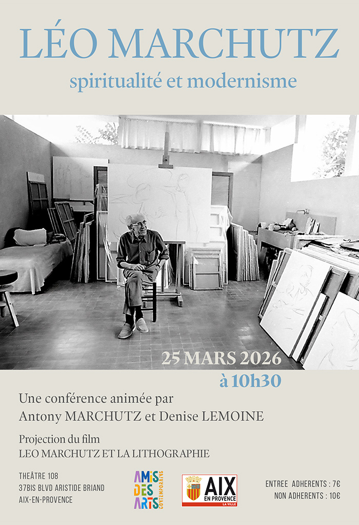Le mercredi 25 mars, nous aurons le plaisir d’accueillir Denis Coutagne et Antony Marchutz. Ces deux intervenants partageront leur connaissance et leur passion pour l’œuvre de Léo Marchutz. Une projection-conférence sera organisée afin de mettre en lumière le travail de recherche d’un artiste hors norme. Cet événement offrira une occasion unique de découvrir le parcours et l’approche singulière de Léo Marchutz.